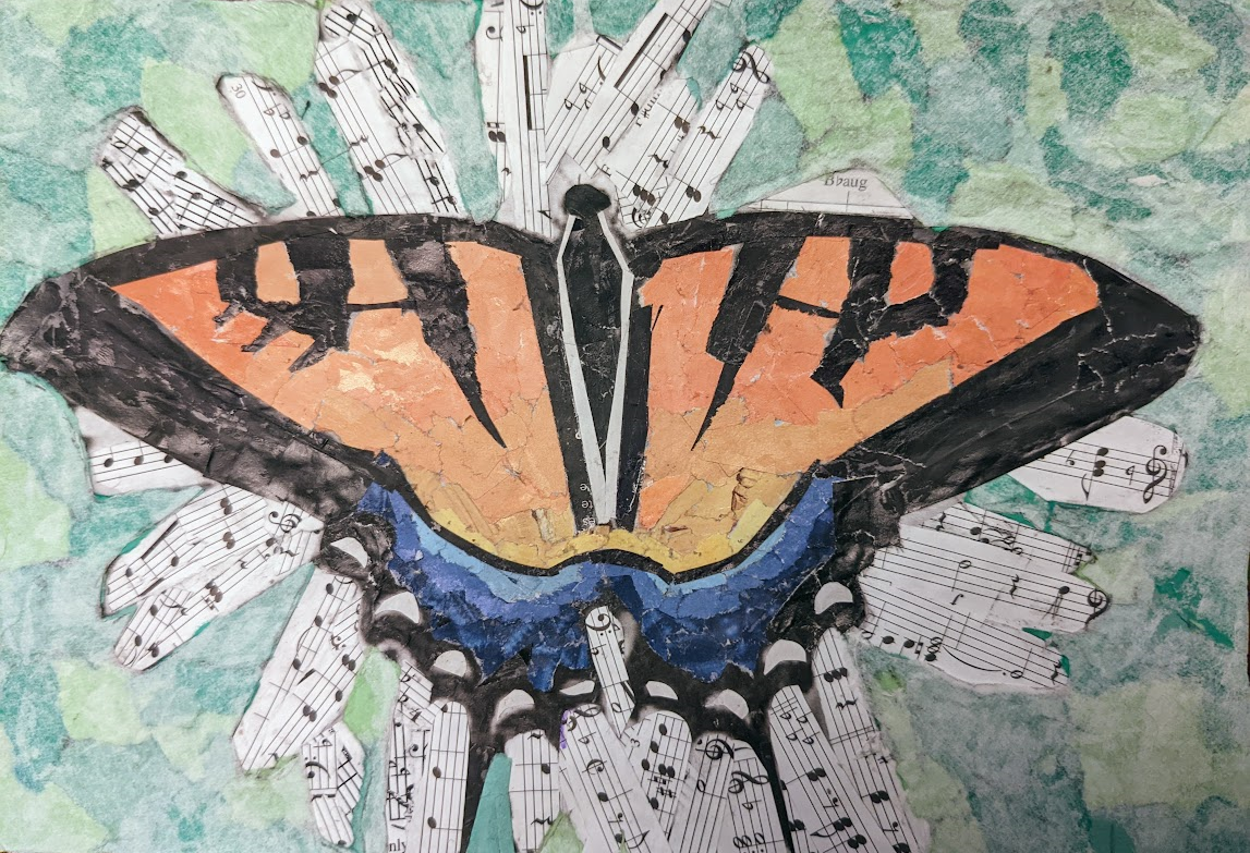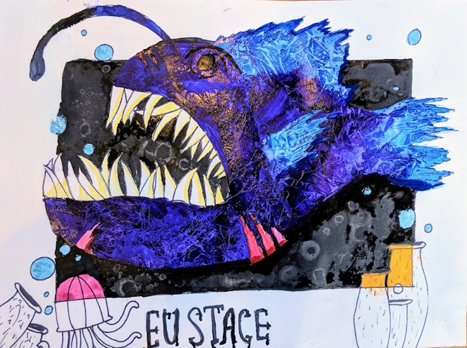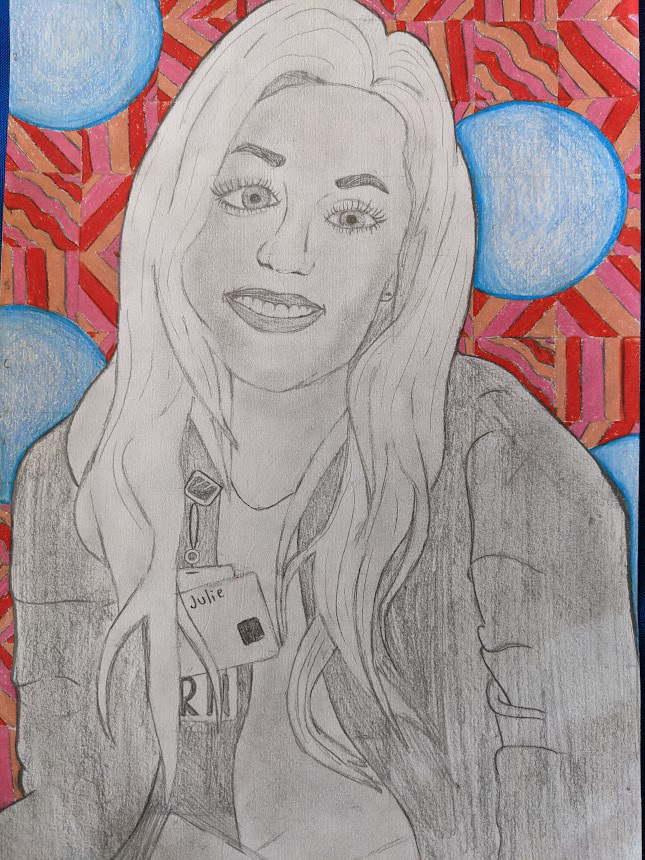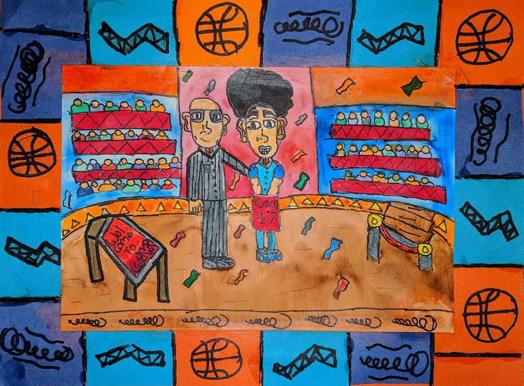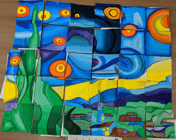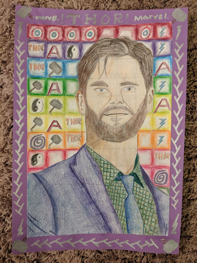 The advanced drawing and painting class created their own custom design to make a 10-foot (3 meter) long mural. Each letter represented a different facet of our school community.